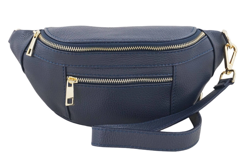 Damska torebka nerka skórzana z kieszenią granatowa została wykonana ze skóry naturalnej licowej. W kolekcji galanterii skórzanej oferujemy modne oraz klasyczne dodatki garderoby, które idealnie komponują się ze swobodnymi kreacjami stylu miejskiego. Praktyczna i wygodna damska torebka nerka skórzana z kieszenią to niezastąpiony dodatek codziennej garderoby. Idealna na spacer, spotkanie, zakupy, czy jazdę na rowerze lub rolkach. Nie krępująca ruchów. Regulowany pasek umożliwia noszenie torebki nerki wygodnie w pasie lub przewieszonej przez ramię. Wyjątkowe i gustowne torebki skórzane - listonoszki, nerki, klasyczne oraz worki dostępne w naszym sklepie wyróżniają się modnym fasonem, subtelnymi ozdobami oraz solidnym wykonaniem. Dostępna w najnowszej kolekcji damska torebka nerka skórzana z kieszenią uzupełni swobodny miejski outfit, podkreśli styl i charakter Twoich kreacji.