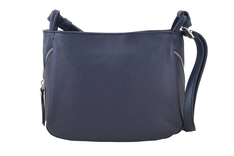 Klasyczna listonoszka skórzana granatowa została wykonana ze skóry naturalnej licowej. Klasyczny fason wyróżniają boczne zamki po obu stronach torebki, ozdobne mocowanie paska oraz solidne wykonanie tego modelu listonoszki, która będzie idealnym uzupełnieniem codziennej stylizacji. Dostępna w najnowszej ofercie klasyczna listonoszka skórzana w granatowym kolorze spełni oczekiwania naszych Klientek pod względem jakości produktu oraz uniwersalnego fasonu torebki. Zapoznaj się z naszą najnowszą ofertą torebek skórzanych - listonoszek, klasycznych lub wygodnych plecaków. Oferujemy duży wybór produktów galanterii skórzanej Dla Niej i Dla Niego, w tym portfele skórzane kolorowe, klasyczne lub lakierowane, zapakowane w eleganckie pudełka.