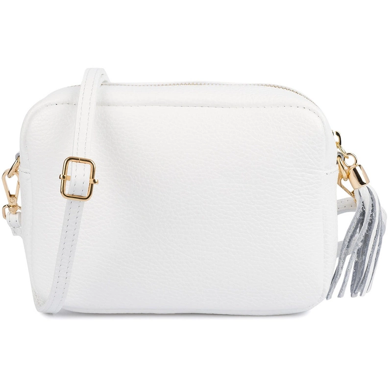 Biała torebka damska listonoszka skórzana z frędzlem modna C74