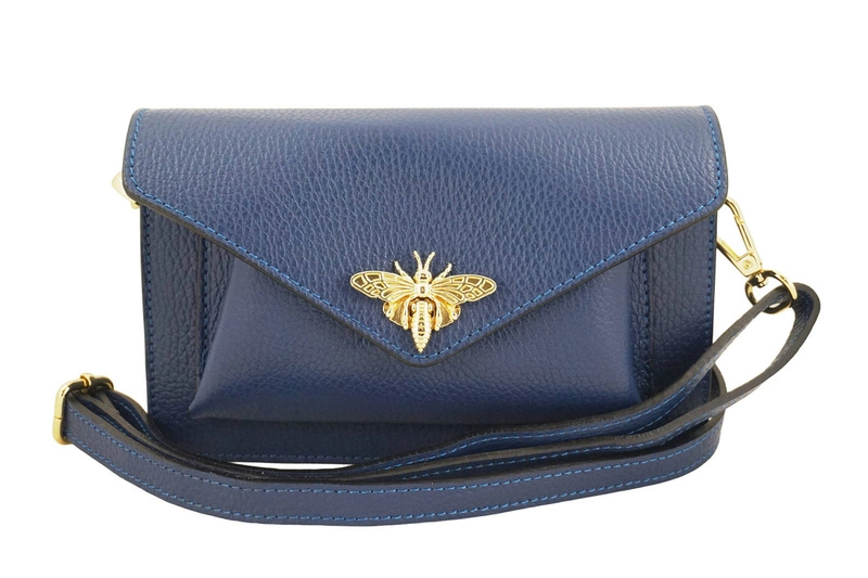 Torebka damska wizytowa skórzana - Granatowa jasna