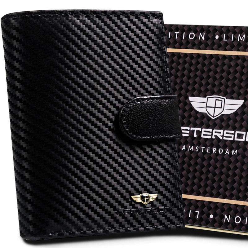 • Elegancki design | Portfel wykonany został z wysokiej jakości skóry naturalnej powleczonej z zewnątrz warstwą do złudzenia przypominającą włókno węglowe (carbon)