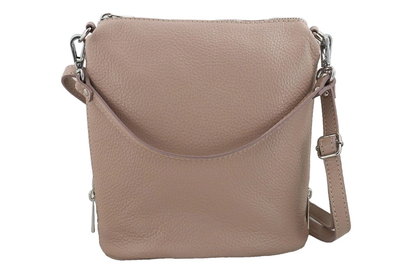 Mała torebka listonoszka skórzana - Różowa pudrowa