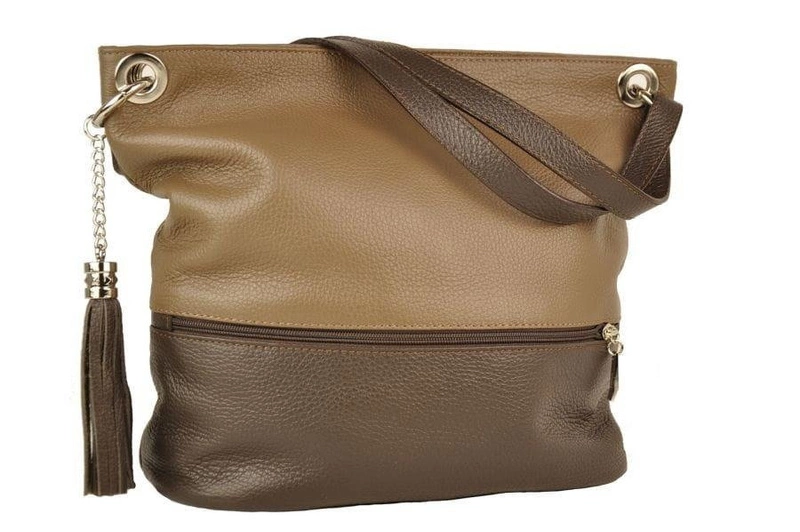 Skórzana torebka worek Barberinis- Beżowo-brązowa