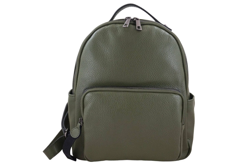 Wnętrze plecaka: pojemne eleganckie plecaki skórzane są wykończone podszewką. Wewnątrz wyodrębniono małą zasuwaną kieszeń mieszczącą drobne kosmetyki oraz dwie wygodne otwarte kieszenie na telefon, portfel lub mały notes. Klasyczne i eleganckie plecaki skórzane posiadają ciemne metalowe okucia, krótki uchwyt do ręki, ozdobiony dwoma nitami, oraz wygodnej długości paski z regulacją (maksymalna dł. 75cm, maksymalna wys. 50cm). Z przodu znajduje się pojemna kieszeń (wymiary - wys.: 16cm, szer.: 21cm), z tyłu poręczna pionowa zasuwana kieszonka umożliwiająca szybki dostęp np. do kluczy. Dodatkowo, po obu stronach, znajdują się boczne kieszenie / schowki. Ze względu na swoją kompaktową budowę, poręczny kształt, a do tego łatwość noszenia eleganckie plecaki skórzane będą idealną propozycją galanterii skórzanej na każdą okazję.
