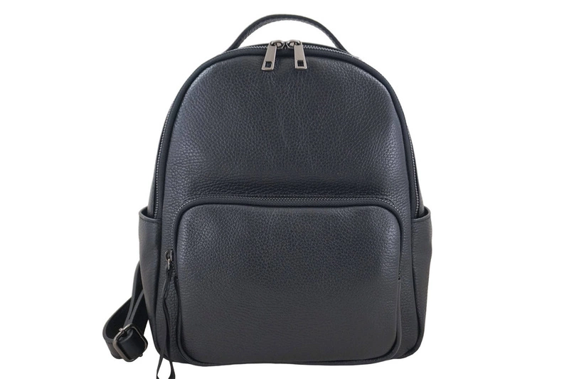 Wnętrze plecaka: pojemne eleganckie plecaki skórzane są wykończone podszewką. Wewnątrz wyodrębniono małą zasuwaną kieszeń mieszczącą drobne kosmetyki oraz dwie wygodne otwarte kieszenie na telefon, portfel lub mały notes. Klasyczne i eleganckie plecaki skórzane posiadają ciemne metalowe okucia, krótki uchwyt do ręki, ozdobiony dwoma nitami, oraz wygodnej długości paski z regulacją (maksymalna dł. 75cm, maksymalna wys. 50cm). Z przodu znajduje się pojemna kieszeń (wymiary - wys.: 16cm, szer.: 21cm), z tyłu poręczna pionowa zasuwana kieszonka umożliwiająca szybki dostęp np. do kluczy. Dodatkowo, po obu stronach, znajdują się boczne kieszenie / schowki. Ze względu na swoją kompaktową budowę, poręczny kształt, a do tego łatwość noszenia eleganckie plecaki skórzane będą idealną propozycją galanterii skórzanej na każdą okazję.