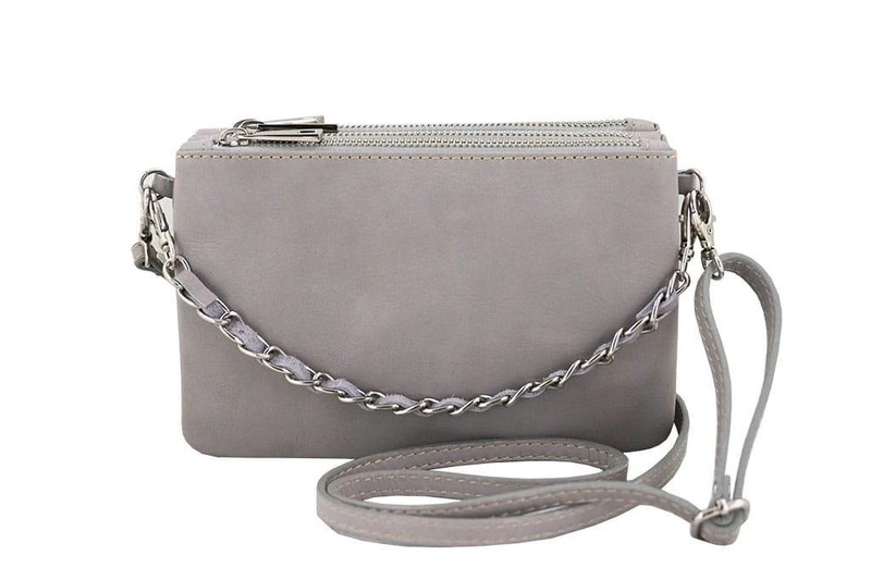 Modna włoska listonoszka skórzana - Barberini's - Szara jasna