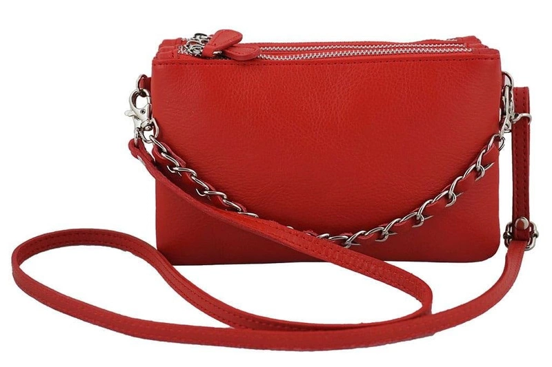 Modna włoska listonoszka skórzana - Barberini's - Czerwona jasna