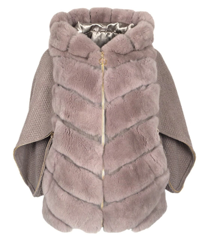 Futerko z królika damski skórzany kożuch z kapturem zimowy ciepły Bukowski