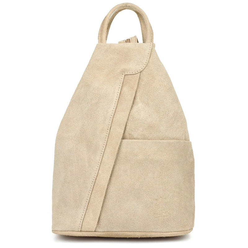 Beżowy Vera Pelle włoski Plecak Skórzany damski mały T53