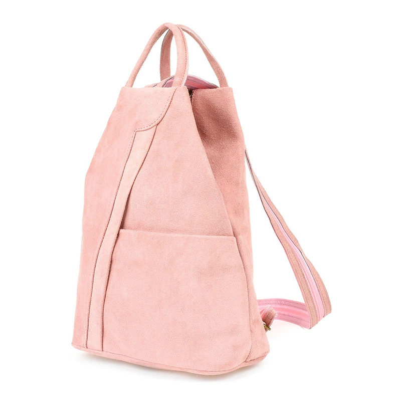 Pudrowo-różowa Vera Pelle włoski Plecak Skórzany damski mały T53