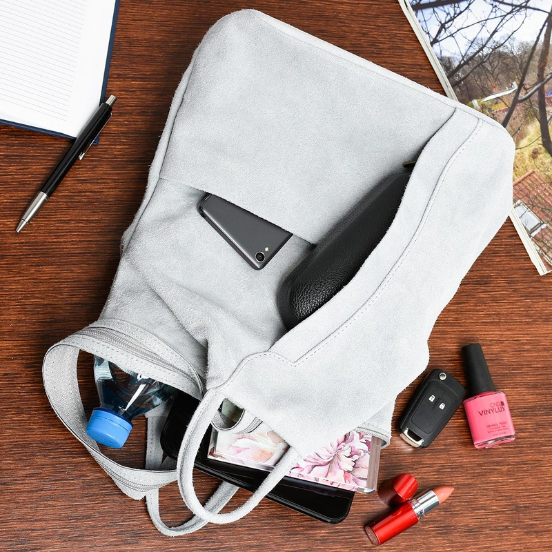 Gustowny i solidny, włoski plecaczek wykonany z naturalnej skóry zamszowej