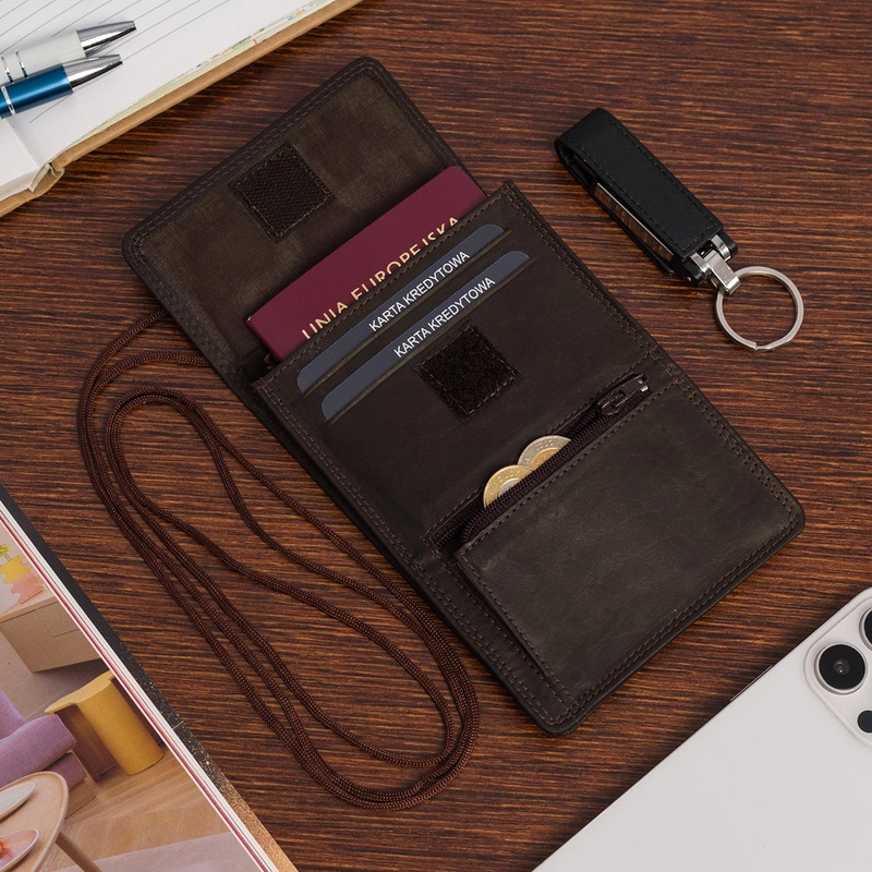 Elegancka Skórzana Paszportówka Saszetka na Szyję Beltimore® - Idealna na Dokumenty i Smartfon!