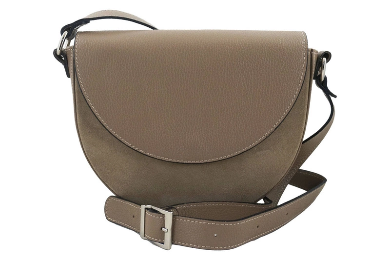 Półokrągła listonoszka skórzana została wykonana z wysokiej jakości skóry naturalnej licowej łączonej ze skórą zamszową. Uniwersalny fason torebki, idealna gabarytowo, mieszcząca to co niezbędne uzupełni klasyczne stylizacje. Srebrna klamra na regulowanym pasku oraz łączenie dwóch rodzajów skóry naturalnej wyróżnia ten model listonoszki spośród szerokiej oferty torebek skórzanych. Półokrągła listonoszka skórzana to niezbędny element stylizacji kobiet dbających o każdy szczegół garderoby. Oferujemy galanterię skórzaną dla Pań i Panów w szerokiej gamie wzorów, kolorów oraz różnych rodzajów skór naturalnych.