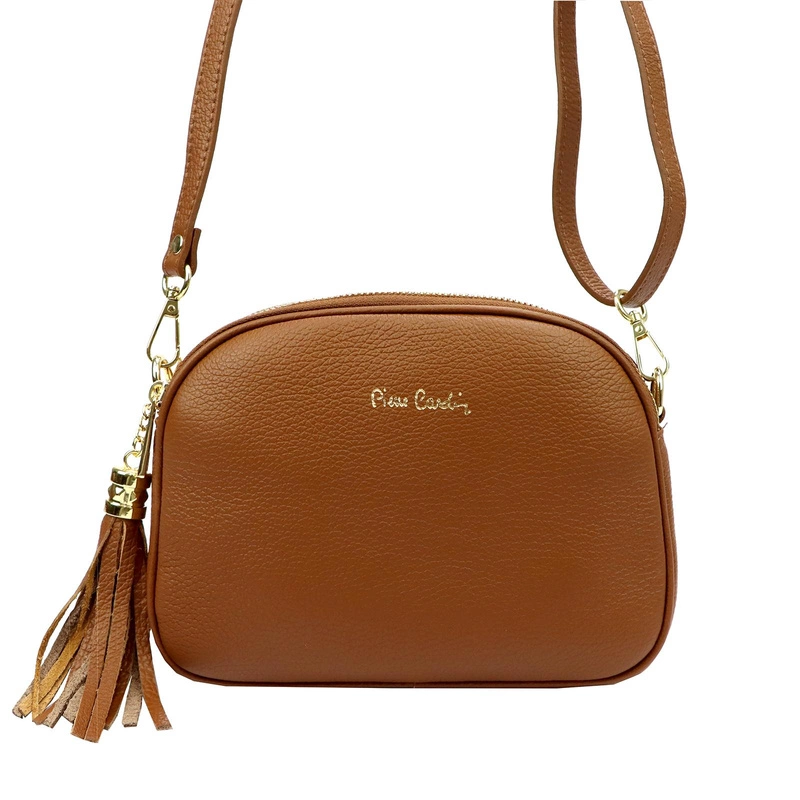 - Skórzana, damska listonoszka Pierre Cardin. To marka, która oznacza najwyższą jakość i klasę, kreuje trendy. Zgrabny model z ozdobnym frędzlem. Złote dodatki podkreślają jej urok. Idealna zarówno na co dzień lub na większe wyjścia.