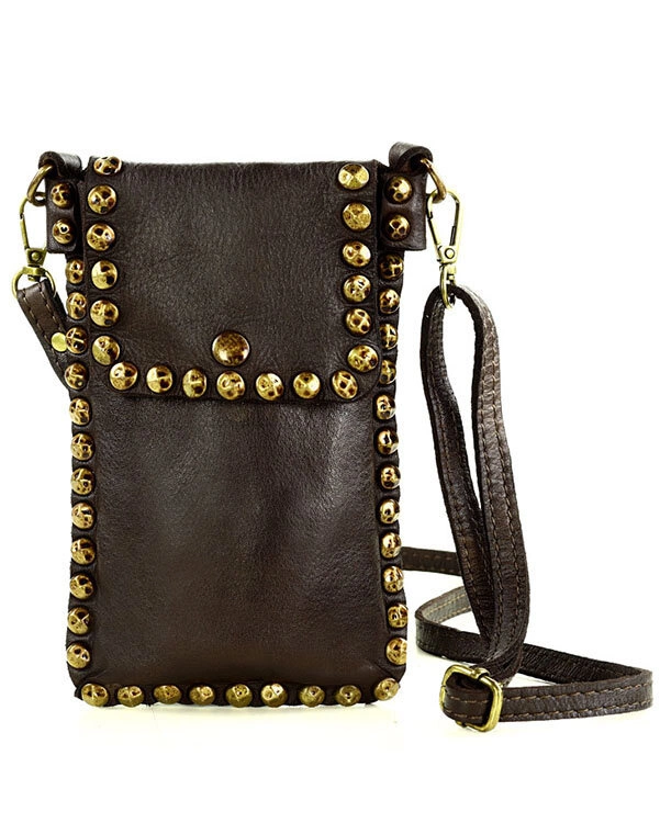 Torebka na telefon z dżetami skórzana phone case - MARCO MAZZINI brąz caffe