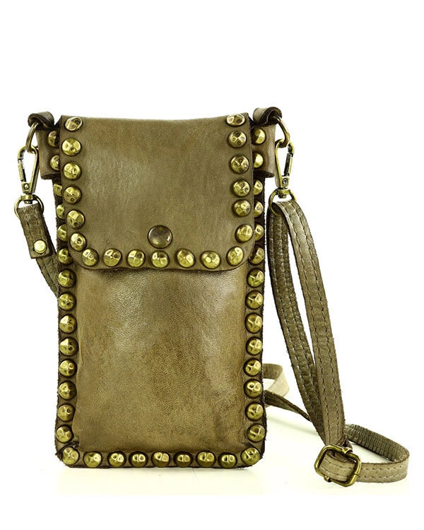 Torebka na telefon z dżetami skórzana phone case - MARCO MAZZINI beż taupe