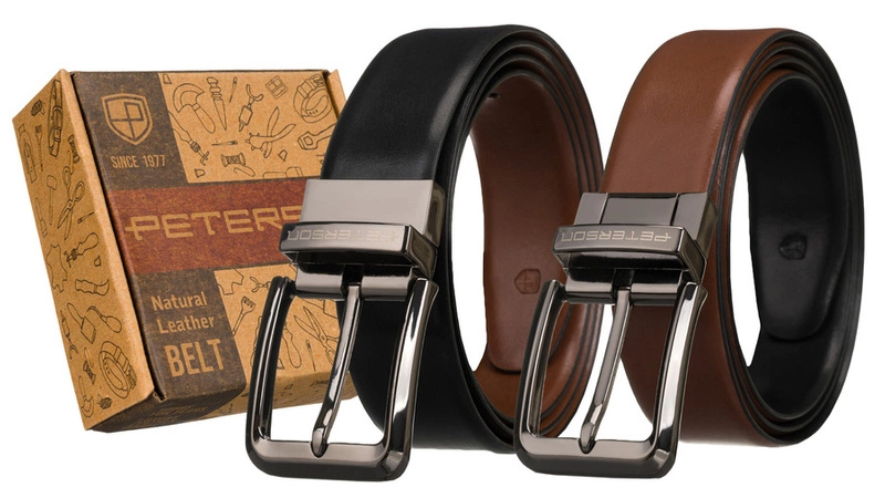 Szeroki, dwustronny pasek męski z obrotową klamrą — Peterson
