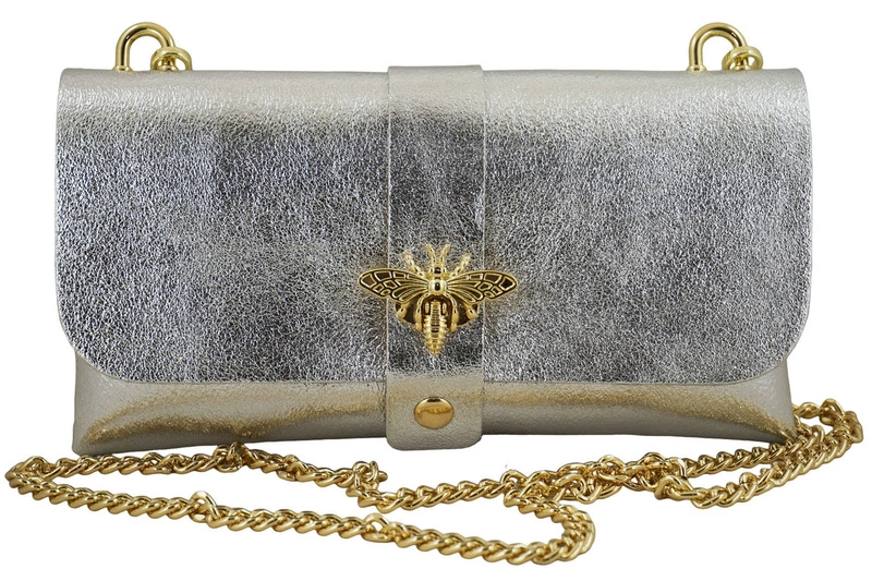 Torebki wizytowe metalizowane w kolorze srebrnym zostały wykonane z naturalnej skóry licowej. Wyjątkowe stylizacje uzupełnią torebki dostępne w naszym sklepie - duży wybór kolorów, najnowsze trendy, ciekawe łączenie różnego rodzaju skór naturalnych oraz delikatne ozdoby. Dostępne w najnowszej ofercie, w kategorii LISTONOSZKI, modne torebki wizytowe metalizowane na złotym łańcuszku to idealny dodatek eleganckiej garderoby. Uniwersalny fason urozmaicony złotymi dodatkami oraz ozdobnie plecioną skórą z obu stron torebki, rozmiarowo idealny aby pomieścić niezbędne rzeczy - telefon, portfel oraz drobne kosmetyki. Nowoczesny design oraz wysokiej jakości skóra naturalna wyróżniają ten model torebki, która będzie idealnym uzupełnieniem stylizacji na spotkanie z przyjaciółmi. Chcesz być informowana o nowej kolekcji, uzupełnieniu magazynowym lub aktualnych promocjach? Zapisz się do naszego newslettera - wraz z informacją o najnowszej kolekcji otrzymasz rabat -15% na zakupy. Skorzystaj z oferty naszego sklepu - gwarantujemy wysoką jakość produktów, solidne wykonanie oraz duży wybór modeli torebek oraz portfeli.