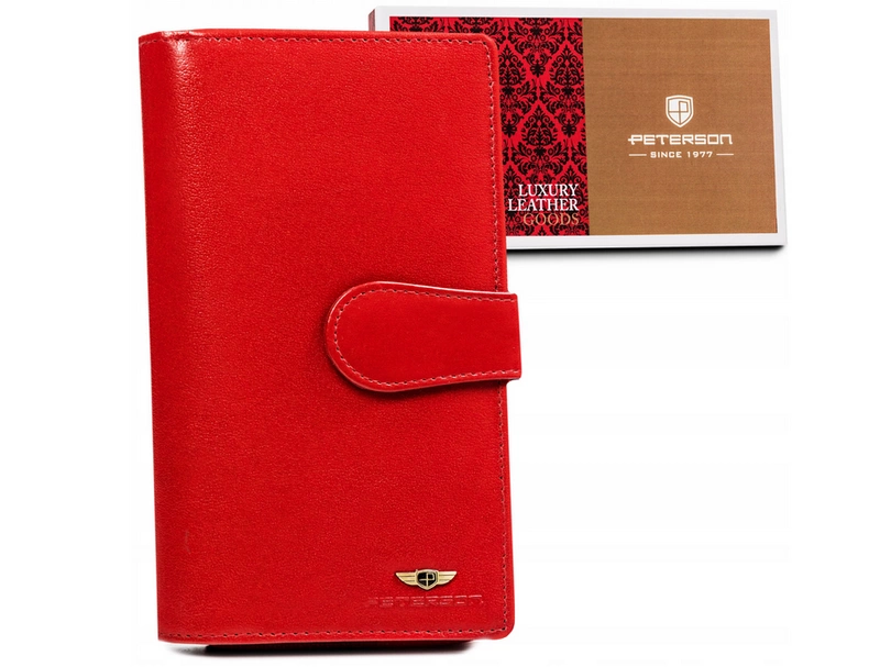 Duży, skórzany portfel damski na zamek i zatrzask — Peterson