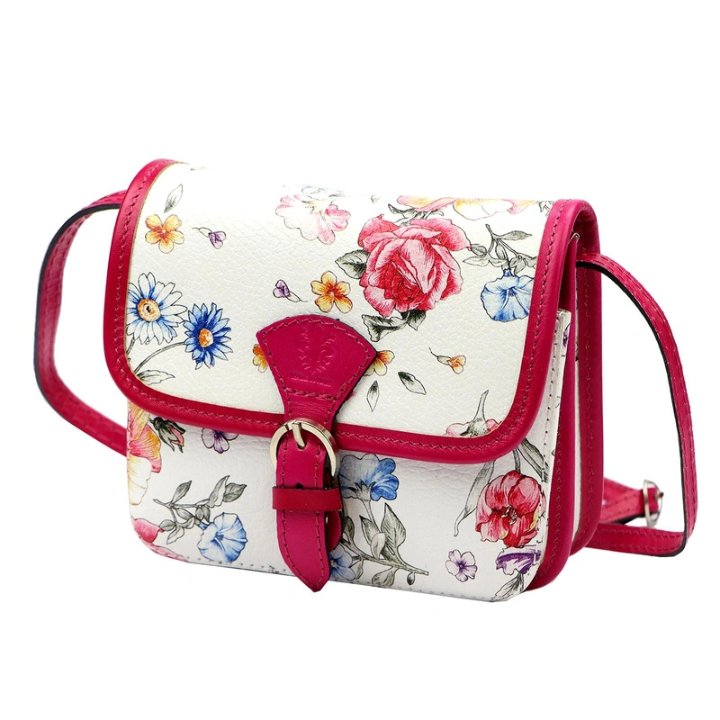 Skórzana damska listonoszka torebka przez ramię w kwiaty Gregorio