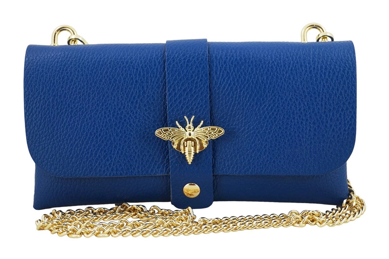Torebki kopertówki na łańcuszku w kolorze chabrowym zostały wykonane z naturalnej skóry licowej. Dostępne w najnowszej ofercie, w kategorii LISTONOSZKI, modne torebki kopertówki na złotym łańcuszku to idealny dodatek eleganckiej garderoby. Uniwersalny fason urozmaicony złotymi dodatkami oraz ozdobnie plecioną skórą z obu stron torebki, rozmiarowo idealny aby pomieścić niezbędne rzeczy - telefon, portfel oraz drobne kosmetyki. Nowoczesny design oraz wysokiej jakości skóra naturalna wyróżniają ten model torebki, która będzie idealnym uzupełnieniem stylizacji na spotkanie z przyjaciółmi. Chcesz być informowana o nowej kolekcji, uzupełnieniu magazynowym lub aktualnych promocjach? Zapisz się do naszego newslettera - wraz z informacją o najnowszej kolekcji otrzymasz rabat -15% na zakupy. Skorzystaj z oferty naszego sklepu - gwarantujemy wysoką jakość produktów, solidne wykonanie oraz duży wybór modeli torebek oraz portfeli.