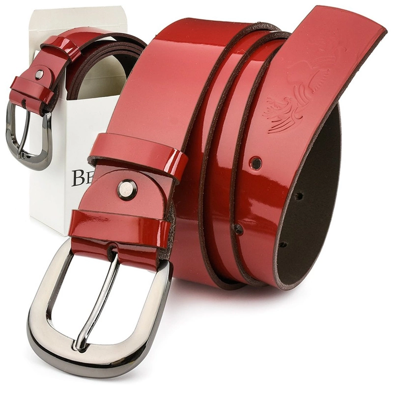 Piękny, skórzany, damski pasek do spodni marki Beltimore o szerokości 4 cm. Prezentowany wariant w tej ofercie jest w niesamowitym i bardzo modnym błyszczącym, czerwonym kolorze. Całość świetnie się ze sobą komponuje.