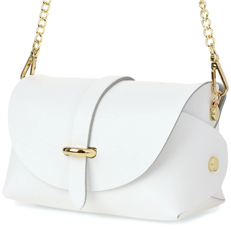 Włoska torebka Skórzana wizytowa na Łańcuszku biała P45