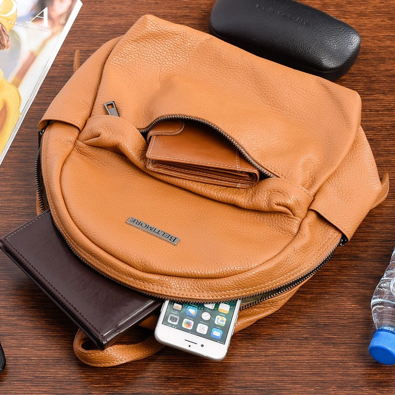 Camelowy mały skórzany plecak damski elegancki plecaczek A5 Beltimore P15