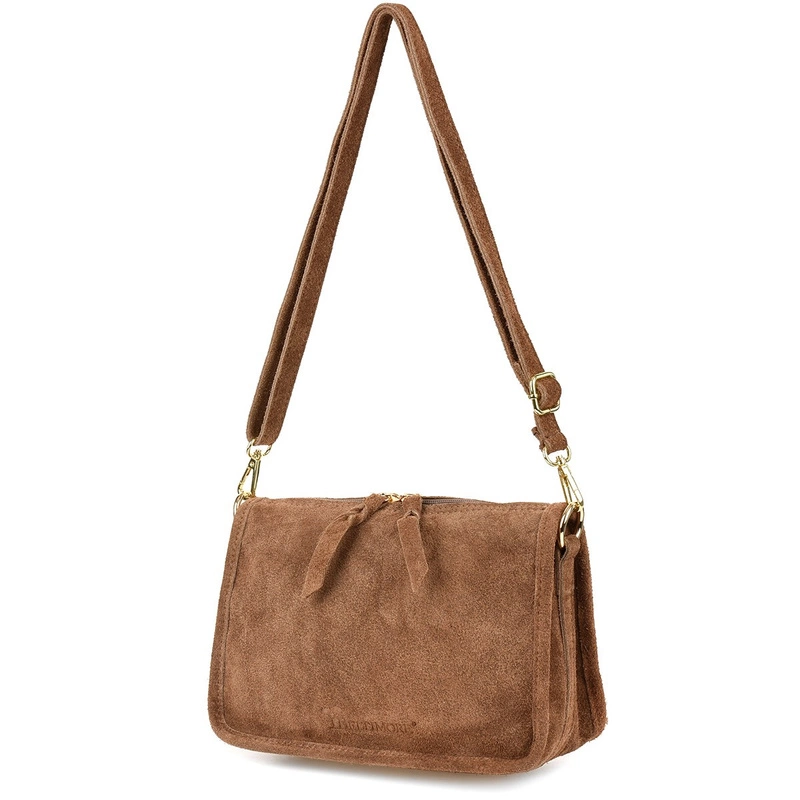 Taupe skórzana listonoszka damska włoska zamszowa kuferek Beltimore B64