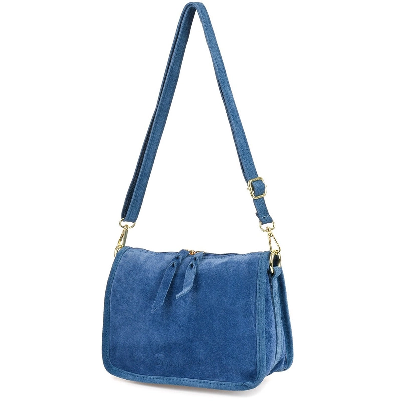 Niebieska skórzana listonoszka damska włoska zamszowa kuferek Beltimore B64