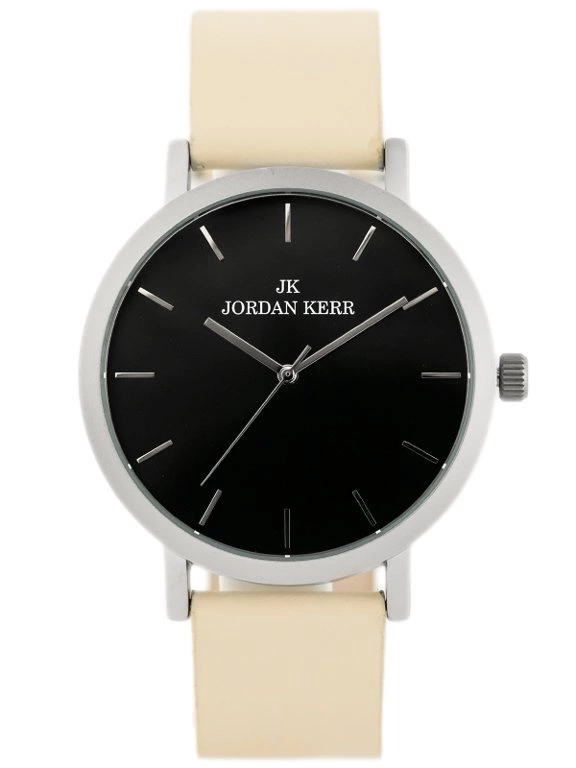 Kolorystyka: tarcza w kolorze czarnym, pasek w kolorze beżowym, matowa koperta w kolorze srebrnym, indeks i wskazówki w kolorze srebrnym