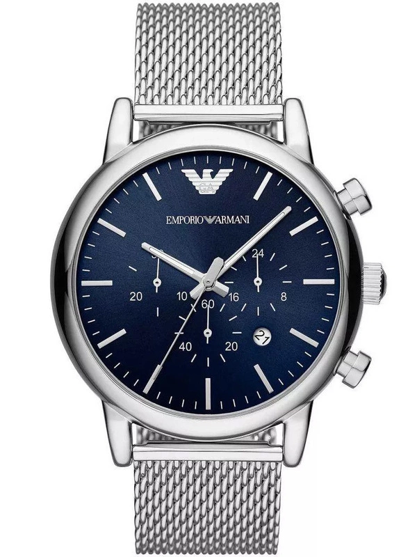 Zegarek Emporio Armani AR80038 Luigi to stylowy męski zegarek na każdą okazję. Na granatowej tarczy zabezpieczonej mineralnym szkłem znajdziemy datownik wskazujący dzień miesiąca oraz subtarcze będące wskazaniami chronografu i czasu dobowego.
