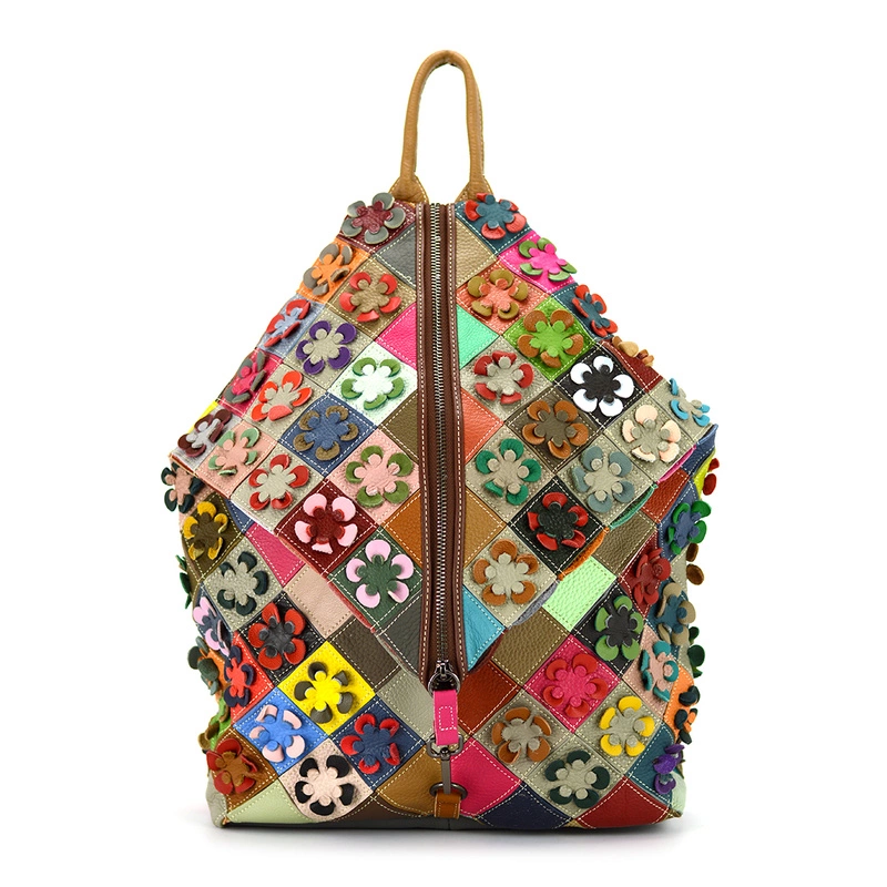Opinie o Kolorowy Plecak damski skórzany w mozaikę i kwiaty