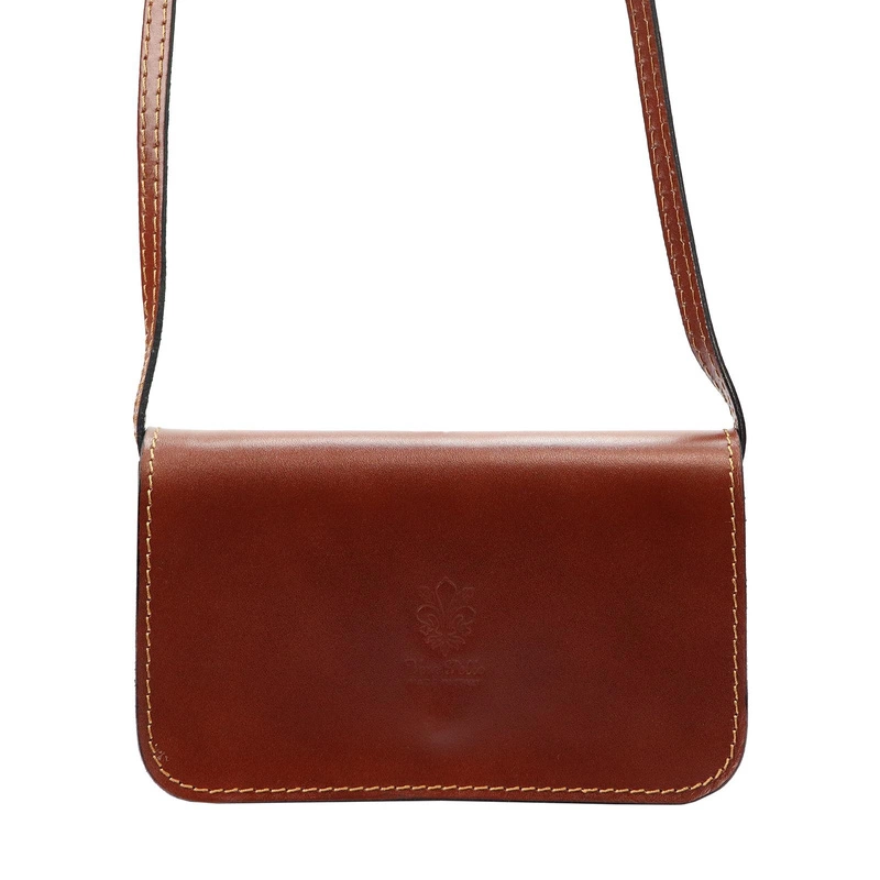 Mała damska torebka o prostokątnym kształcie w fasonie listonoszki wyprodukowana przez włoską markę Vera Pelle z serii Gregorio. Wzorowe wykonanie z najlepszej jakości skóry naturalnej, odpornej na otarcia i uszkodzenia mechaniczne. Gładka faktura bez wzoru, na której wytłoczone zostało logo producenta.