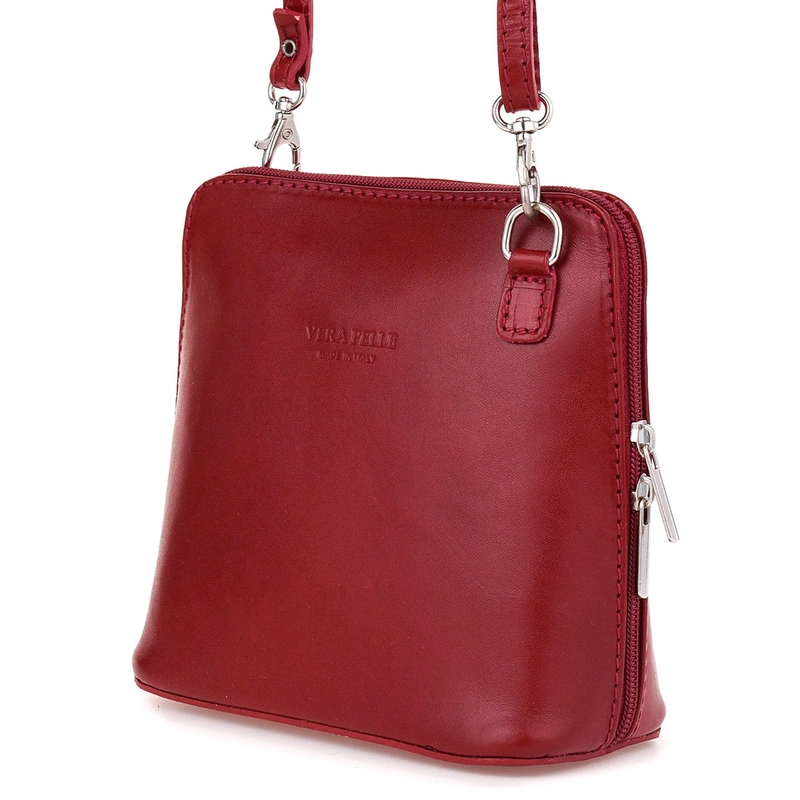 Vera Pelle Torebka Skórzana mała listonoszka czerwona K03