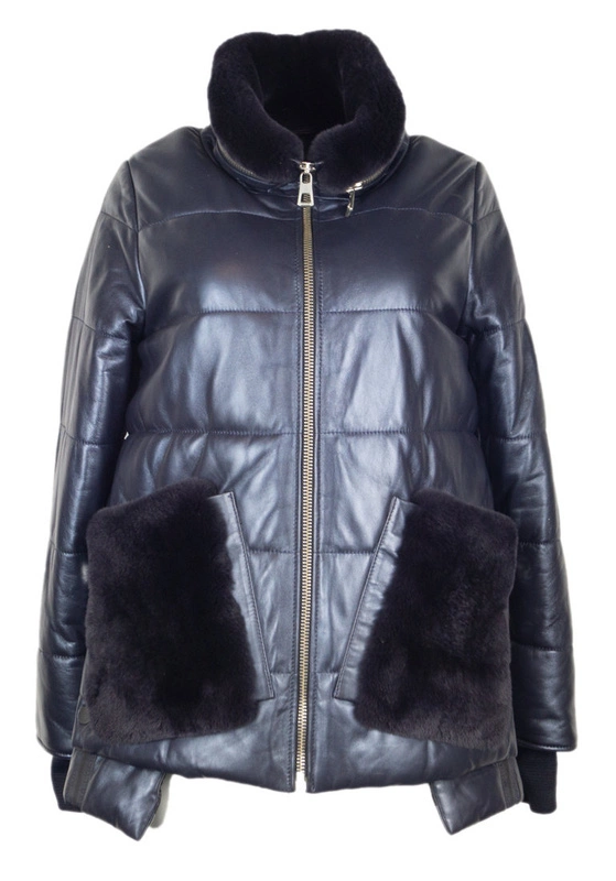 Ciepła Kurtka skórzana puchowa damska z futerkiem z królika Bukowski