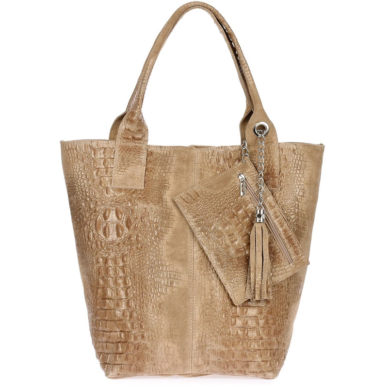 Opinie o Torebka Worek Skórzana A4 krokodyl z Saszetką beżowa L94