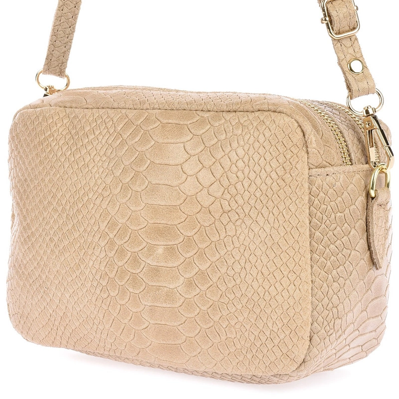 Beżowa skórzana listonoszka damska włoska croco kuferek Beltimore P12