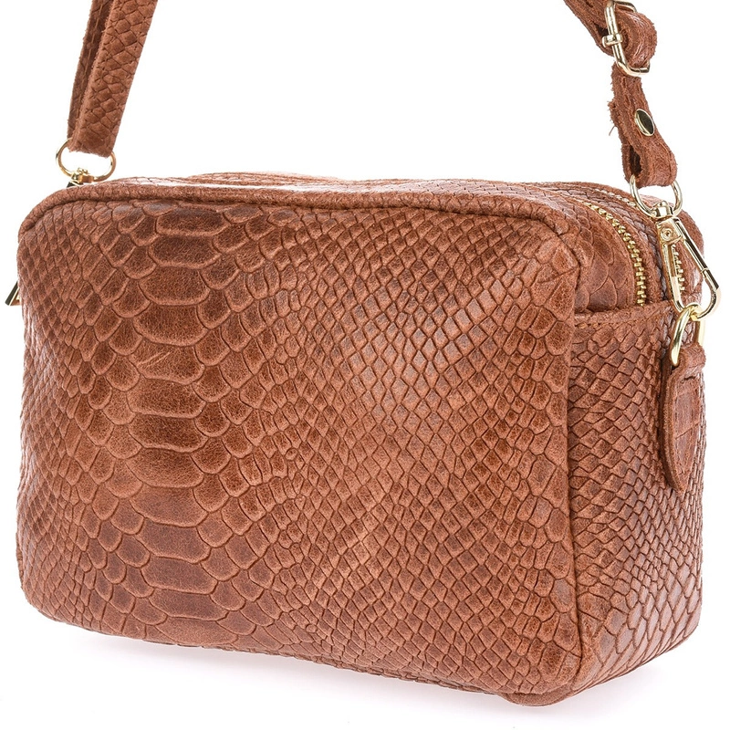 Koniakowa skórzana listonoszka damska włoska croco kuferek Beltimore P12