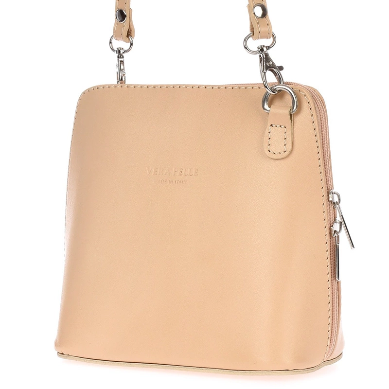 Vera Pelle Torebka Skórzana mała listonoszka beżowa K03