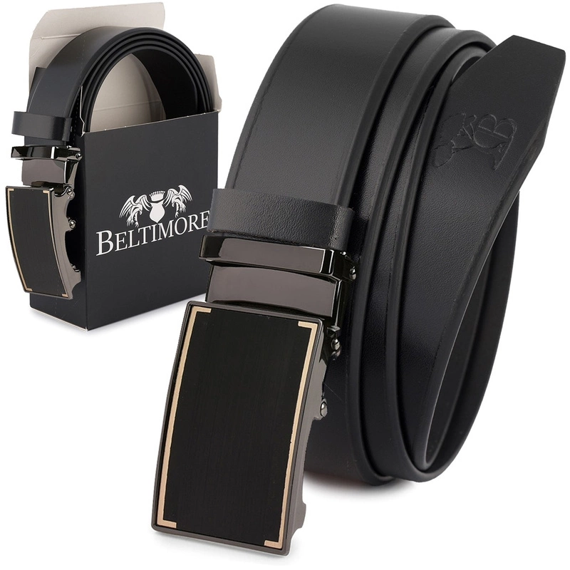 Pasek męski skórzany klamra automat czarny Beltimore A08 : Kolory - czarny, Rozmiar pasków - r.115-130 cm