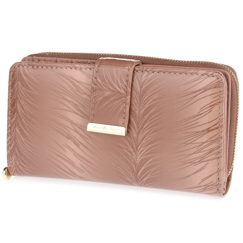 Opinie o Beżowy skórzany portfel damski lakierowany duży poziomy elegancki Jennifer Jones E72