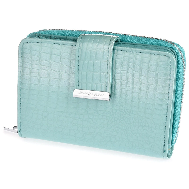 Skórzany portfel damski lakierowany elegancki modny turkusowy 826
