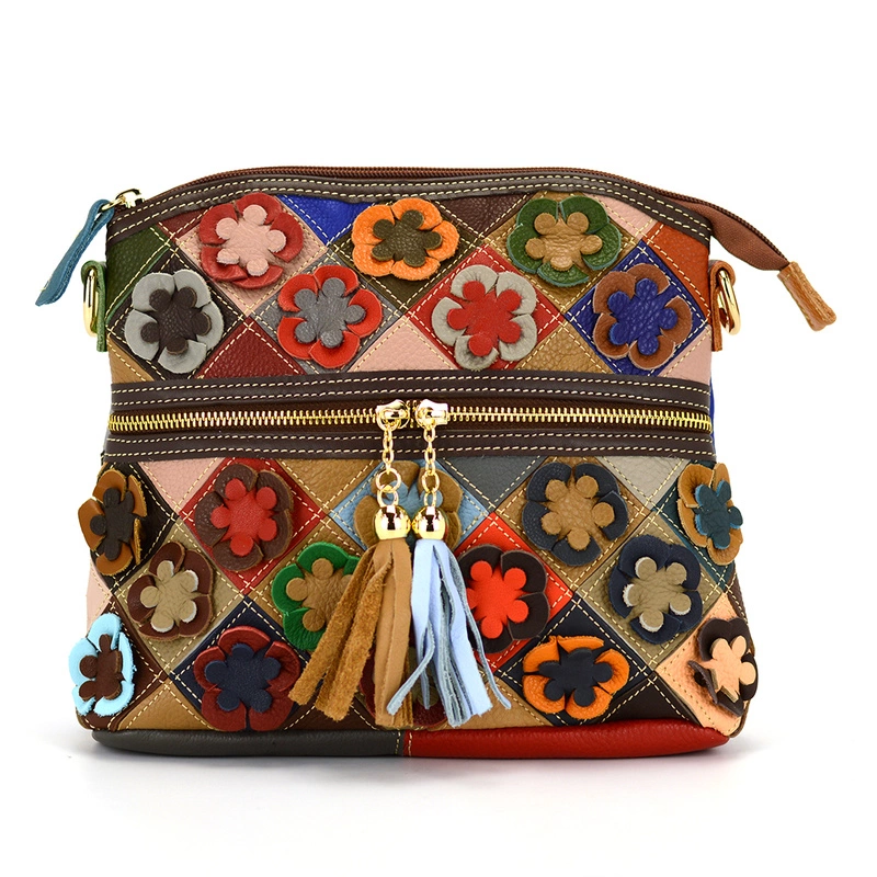 Opinie o Piękna kolorowa listonoszka skórzana, wzór mozaiki