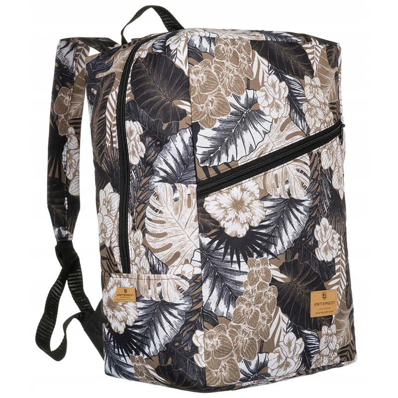- Komfortowy, wodoodporny jednokomorowy plecak podróżny. Ozdobiony przepięknym roślinnym printem, dzięki której nadasz swojej stylizacji dodatkowego szyku. Wykonany tak, aby spełniać wymagania linii lotniczych dotyczących bezpłatnego, podręcznego bagażu.