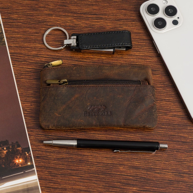 Skórzane etui na klucze dokumenty, pokrowiec kluczówka brązowe vintage E48