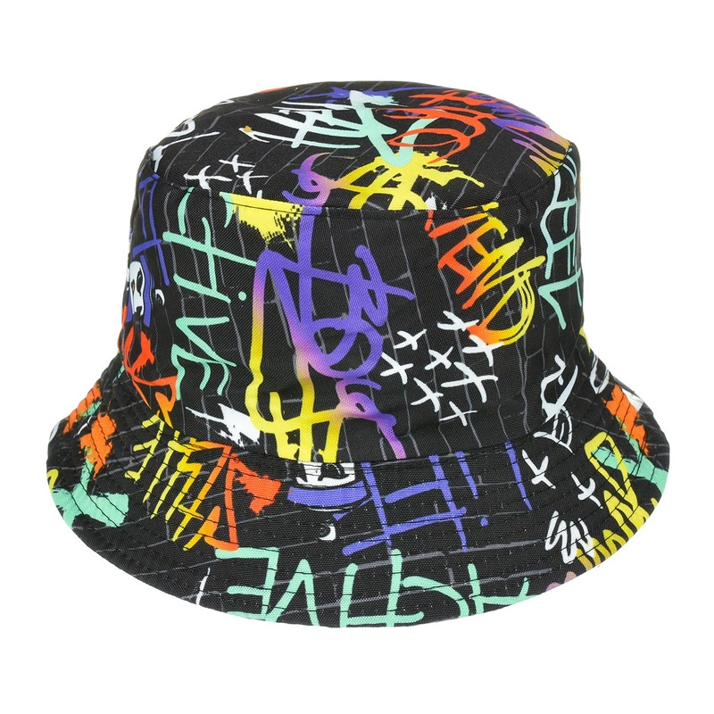 Kapelusz dwustronny bucket hat czapka czarna kolorowe napisy kap-m-36