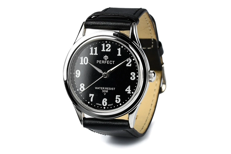 KLASYCZNY ZEGAREK Z CZARNĄ TARCZĄ MĘSKI PERFECT SKÓRZANY PASEK 228