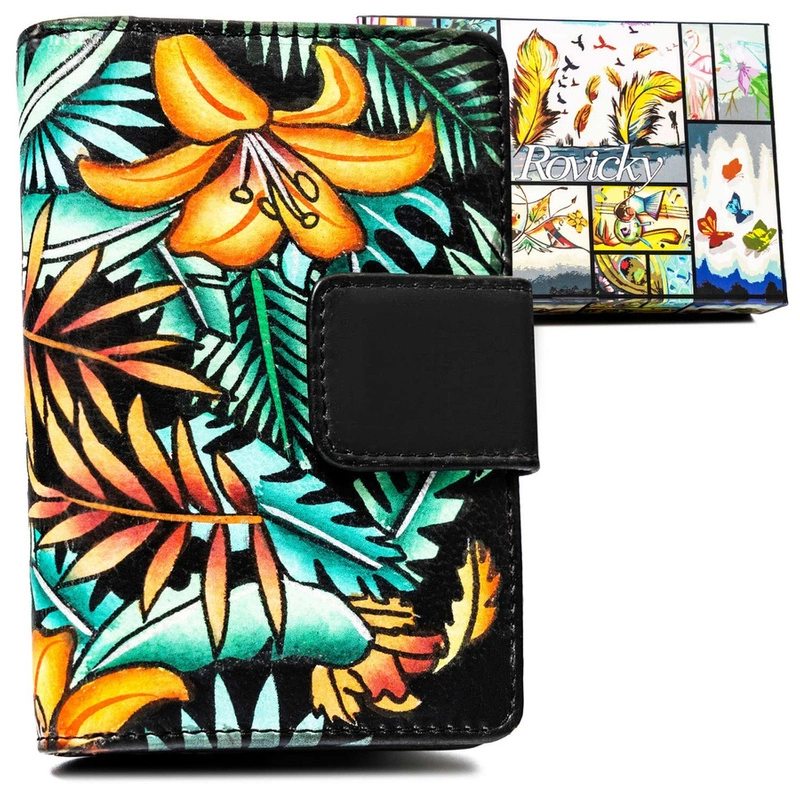 Duży pionowy portfel damski ze skóry naturalnej z roślinnym motywem Rovicky