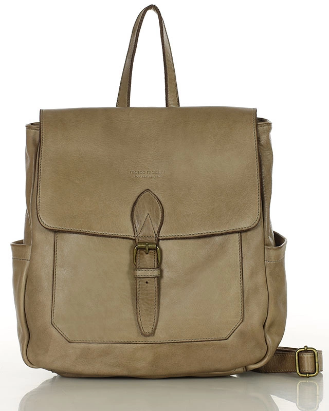 Plecak skórzany damski Marco Mazzini w kolorze beżowym to propozycja dla kobiet, które cenią sobie jakość i styl. Wykonanie z z naturalnej skóry licowej, bydlęcej, o gładkiej powierzchni gwarantuje, że plecak posłuży Ci przez wiele lat. Skóra tego typu charakteryzuje się tym, że jest trwała, miękka i aksamitna w dotyku. Plecak damski miejski jest ręcznie szyty, a następnie w całości farbowany, starzony i uszlachetniany. Procesy te gwarantują długowieczny efekt skóry naturalnej oraz aksamitność w dotyku. Skóra użyta do produkcji jest odporna na obciążenia i niepowtarzalna z wyglądu.